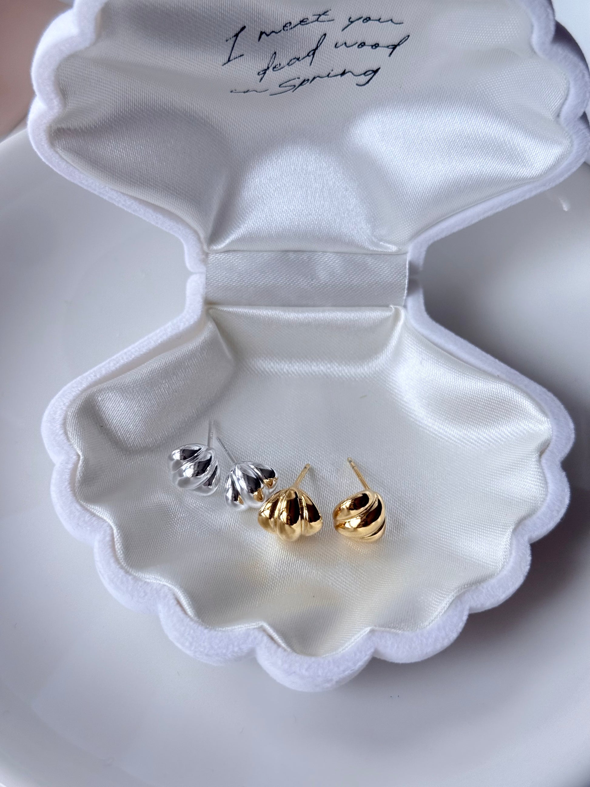 商品特色|像被手工輕輕捏出的立體線條,這款耳環擁有柔滑的捲紋造型與自然金屬光澤。立體的柔光捲紋,像