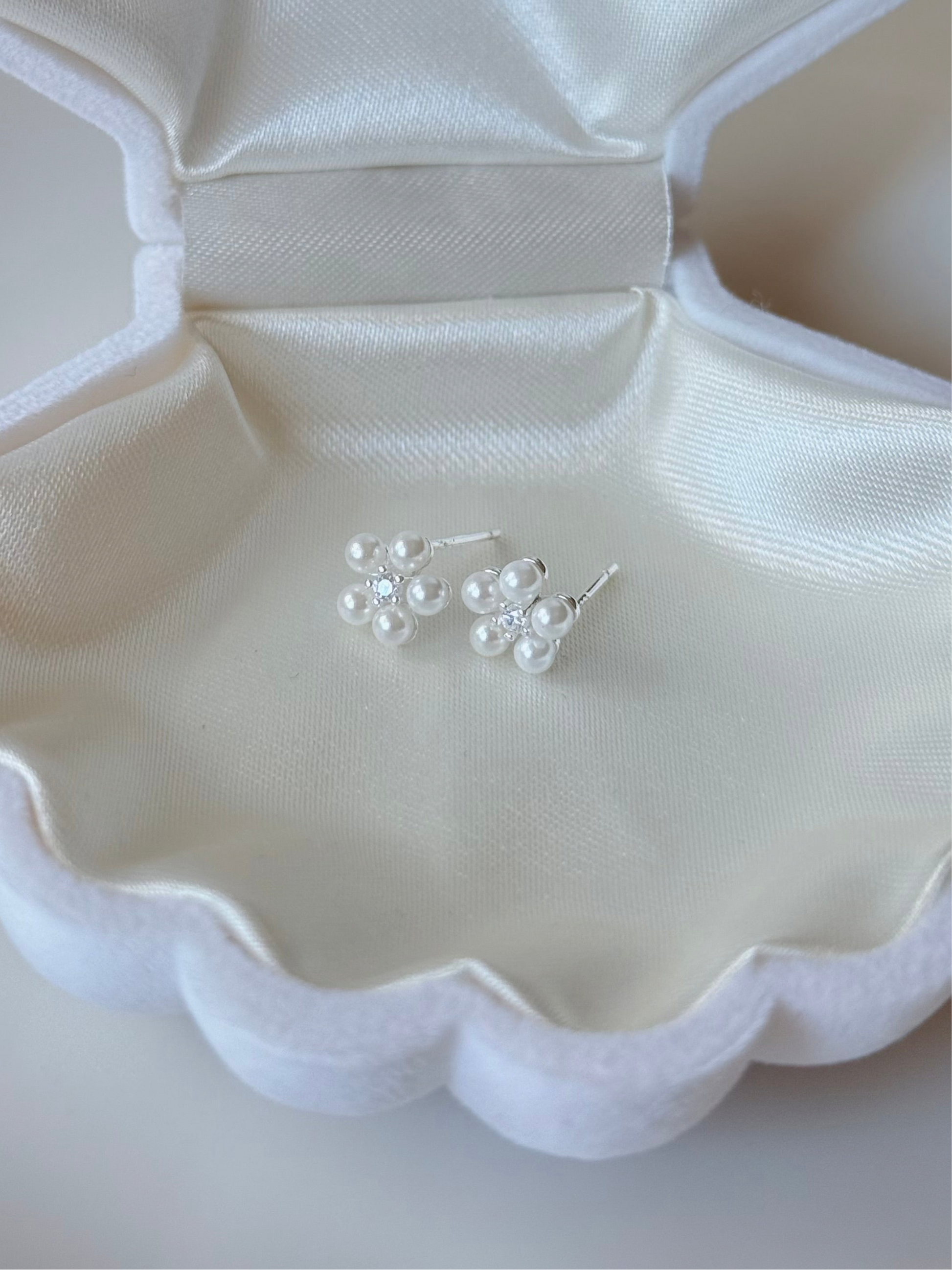 可愛的珍珠小花耳環