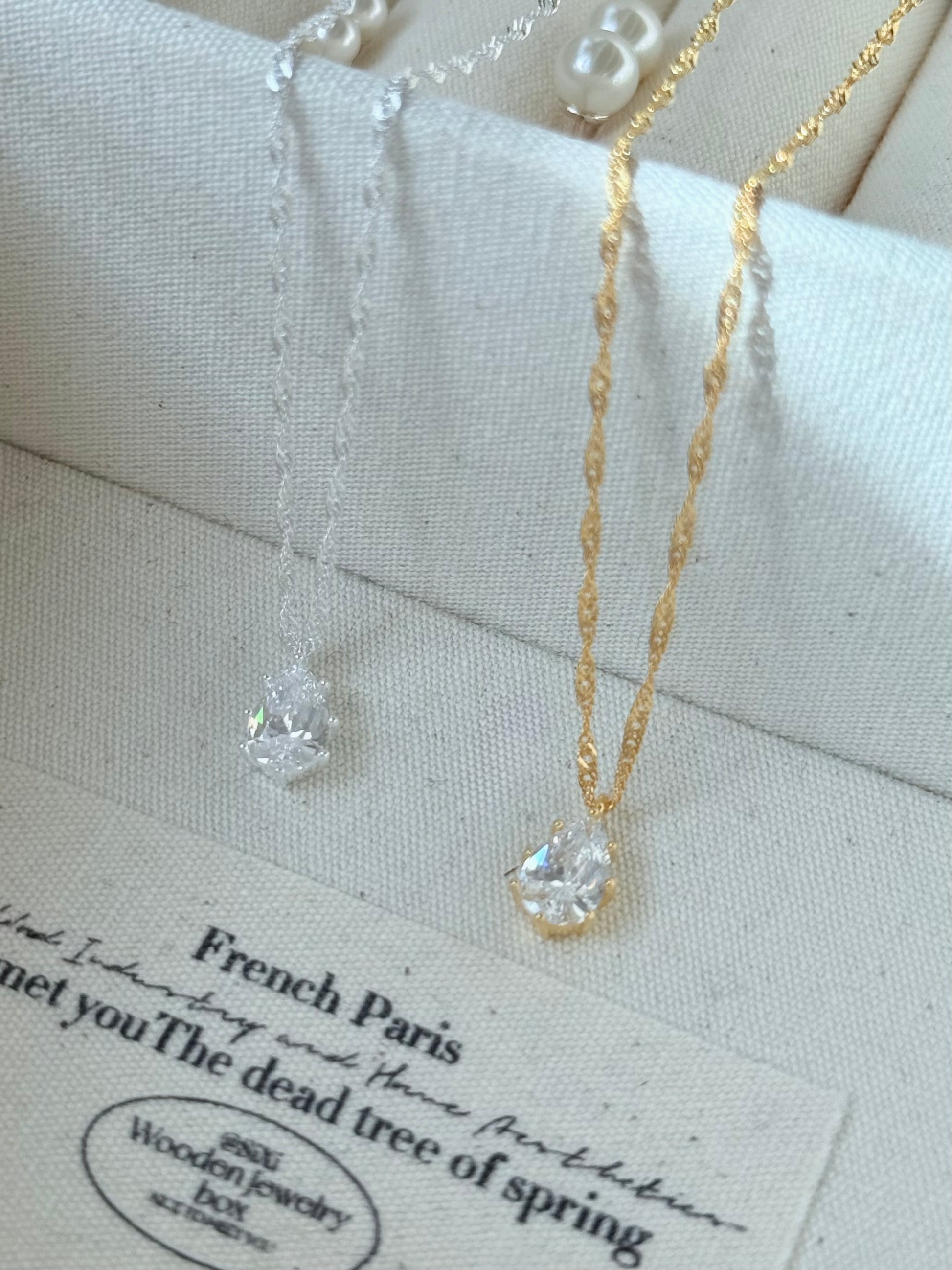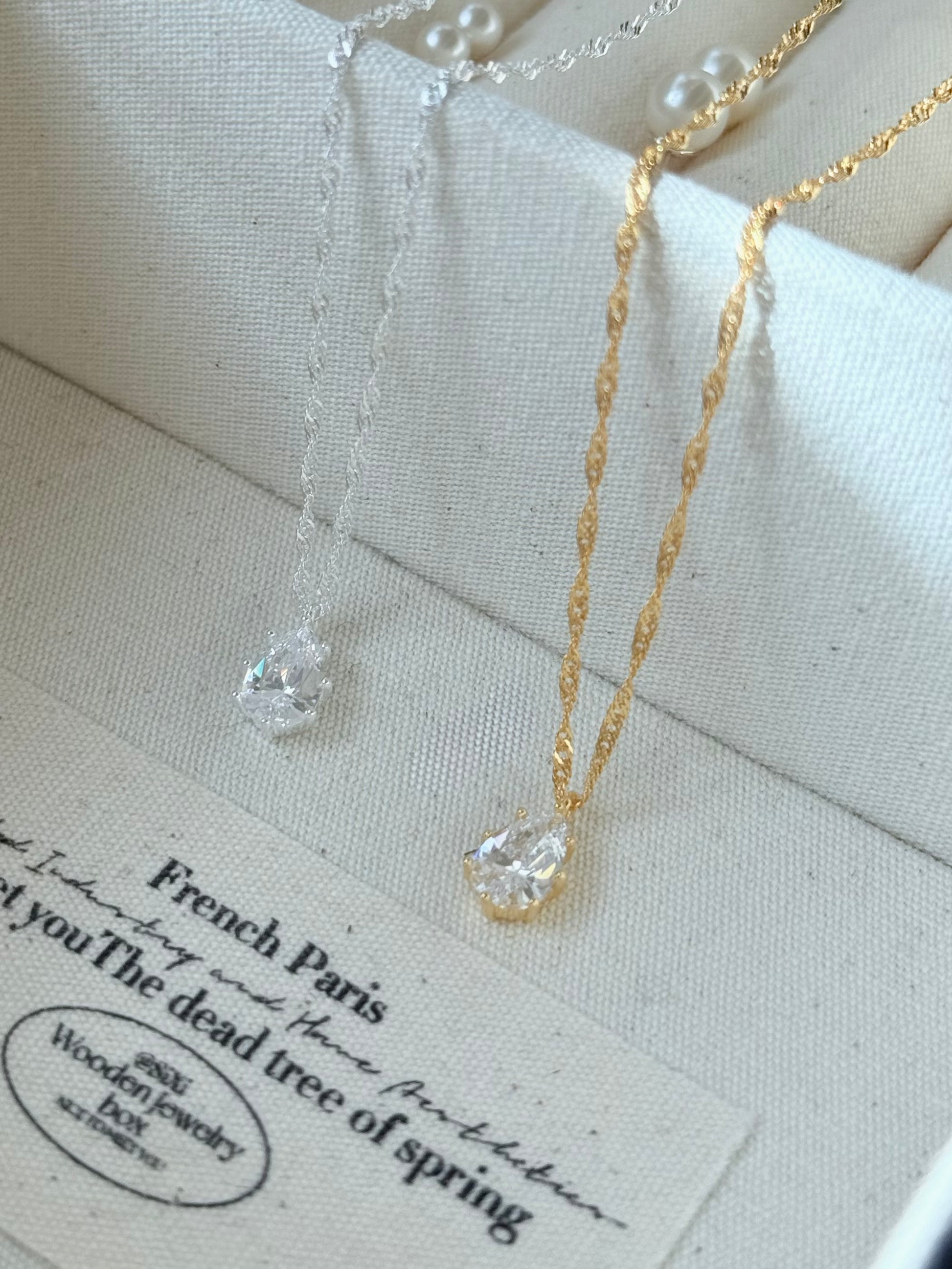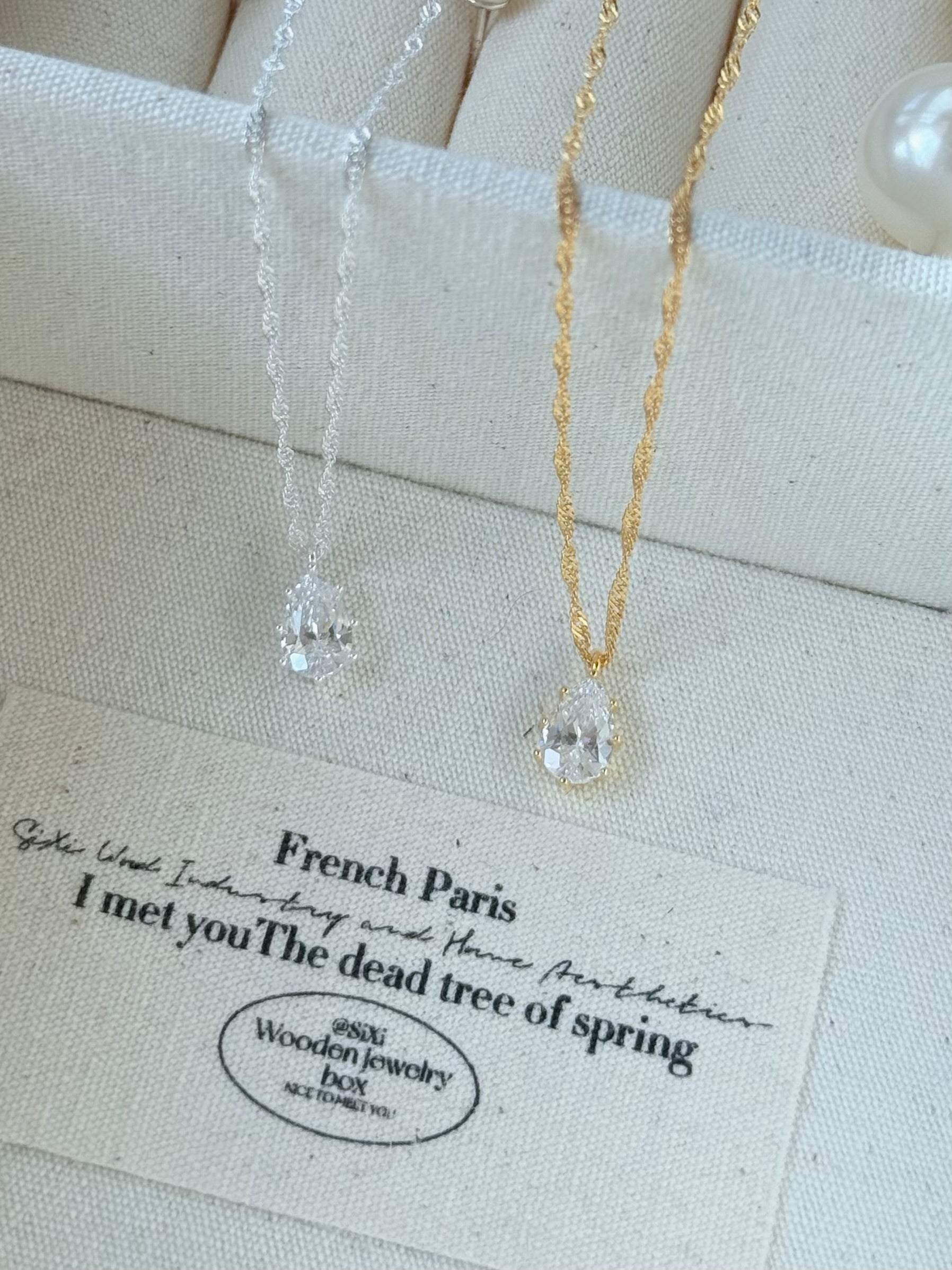 商品特色|細緻的水滴垂墜在胸前,像把一滴溫柔的光芒帶在身邊。低調卻充滿質感,復古的線條讓日常多了一份優
