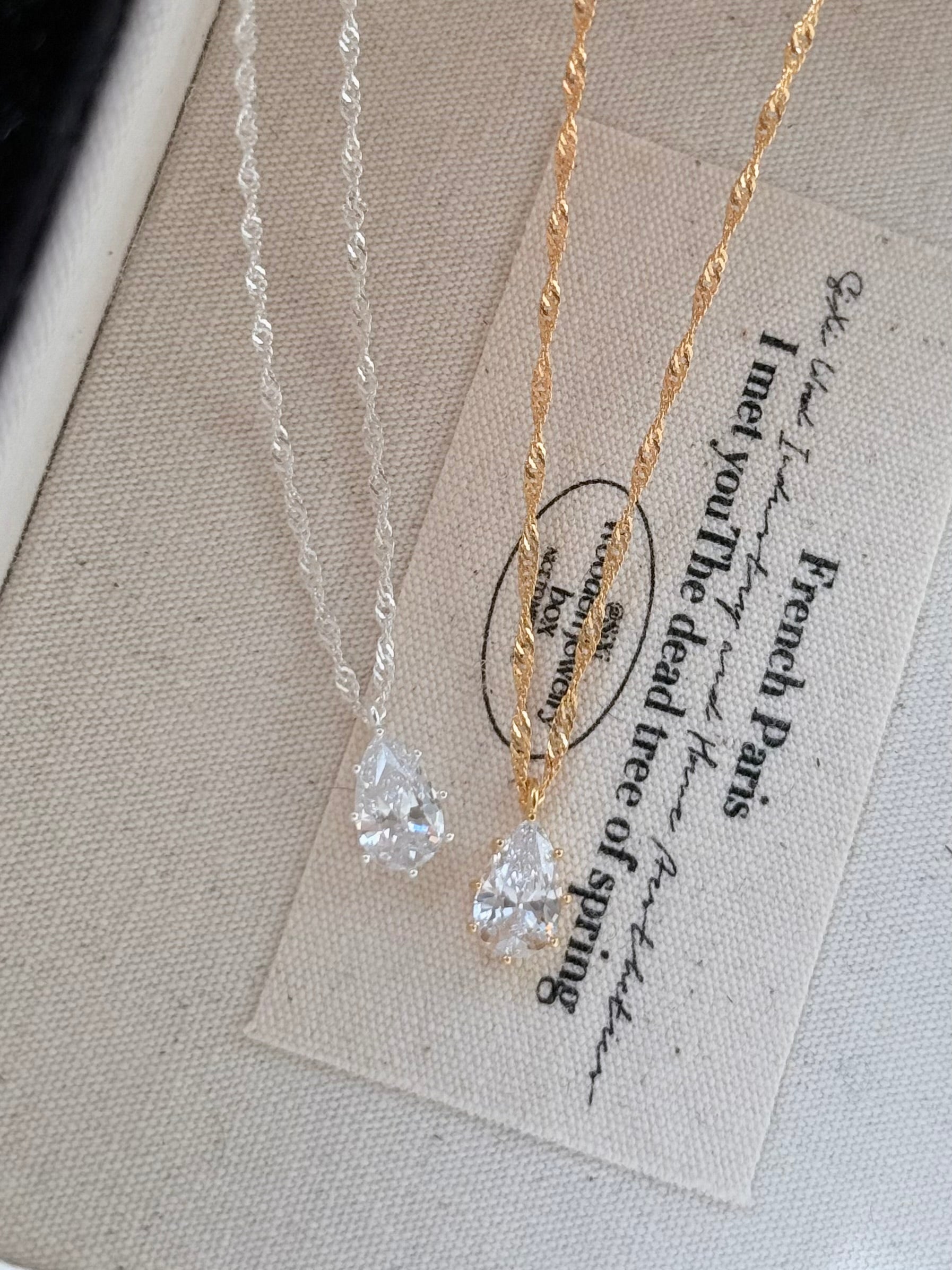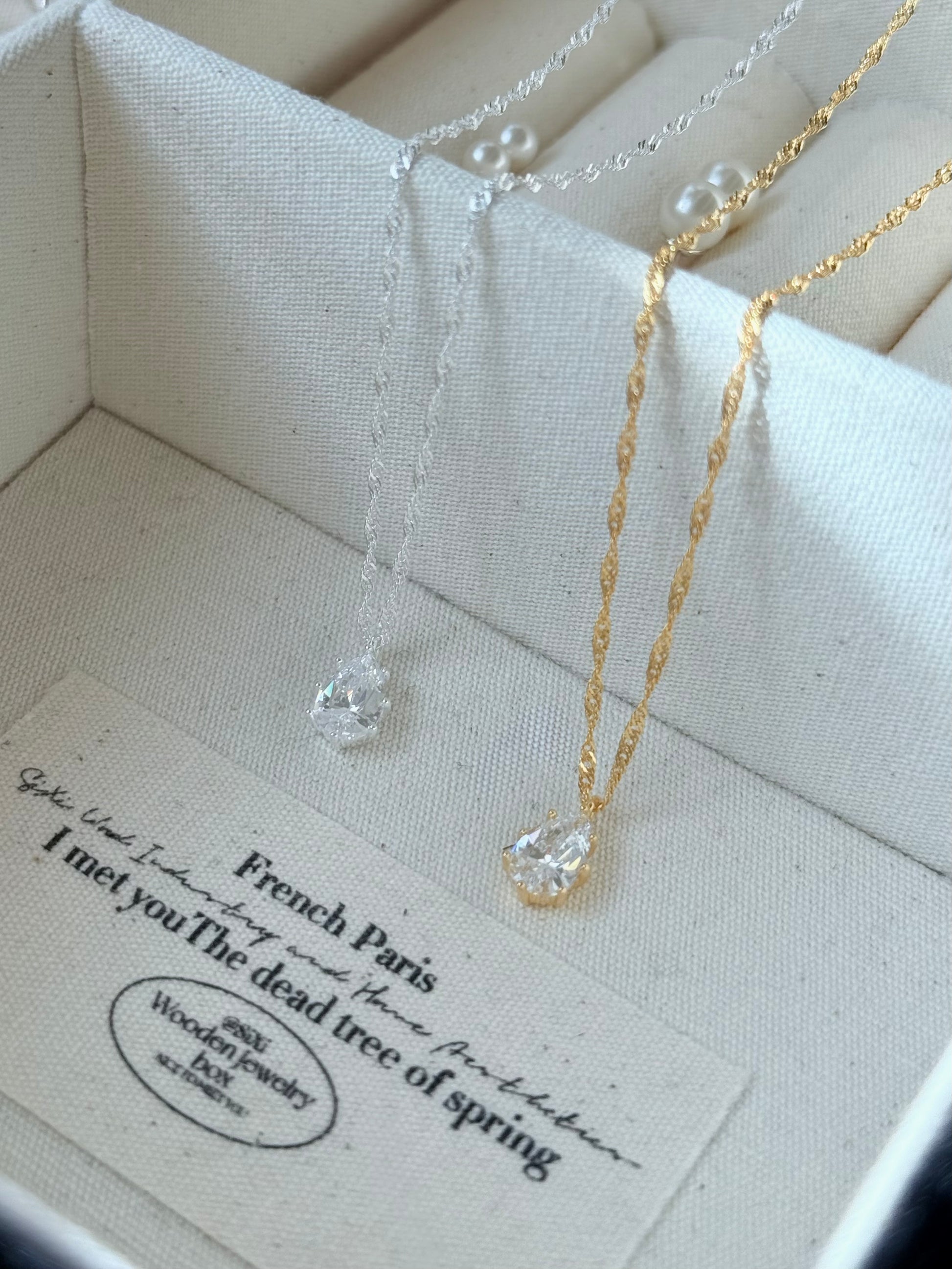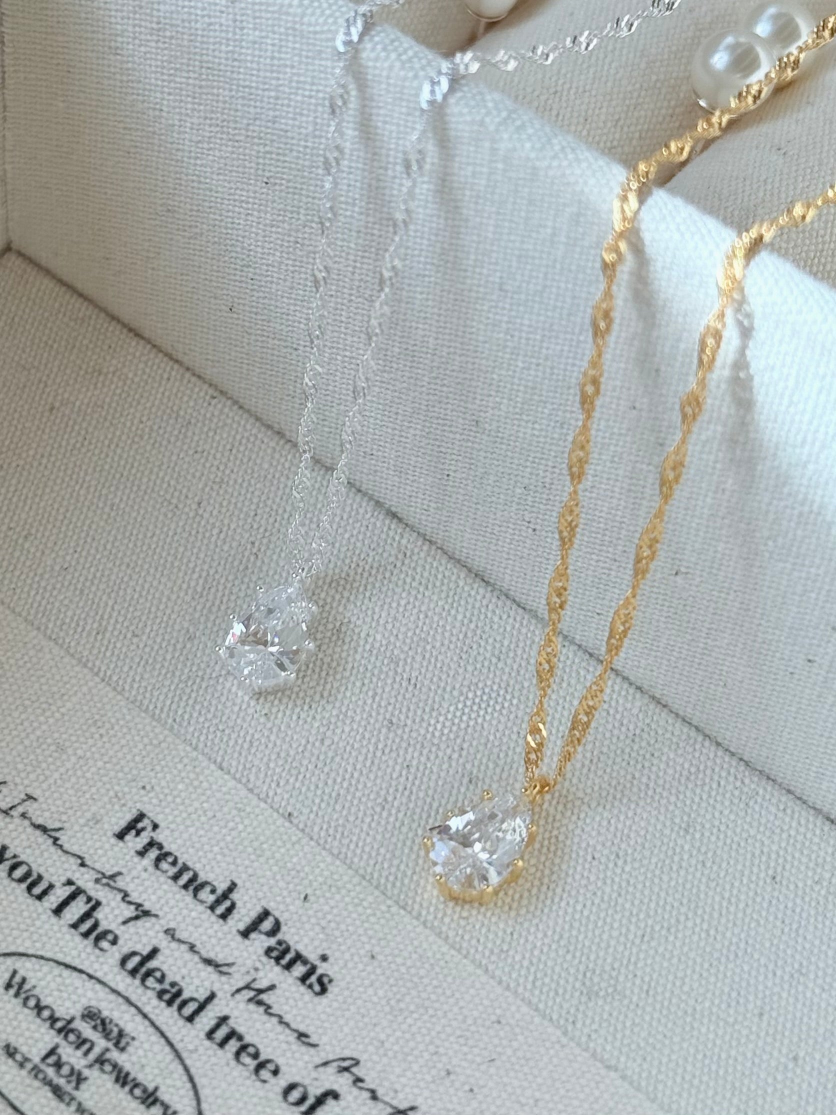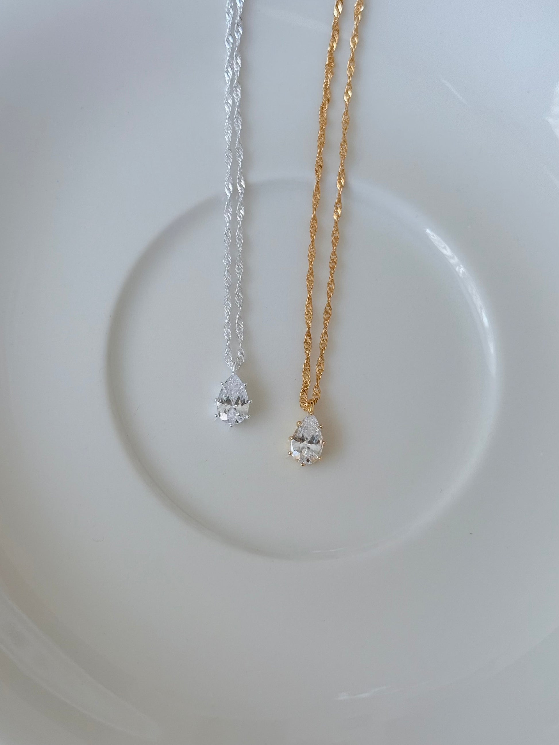 商品特色|細緻的水滴垂墜在胸前,像把一滴溫柔的光芒帶在身邊。低調卻充滿質感,復古的線條讓日常多了一份優