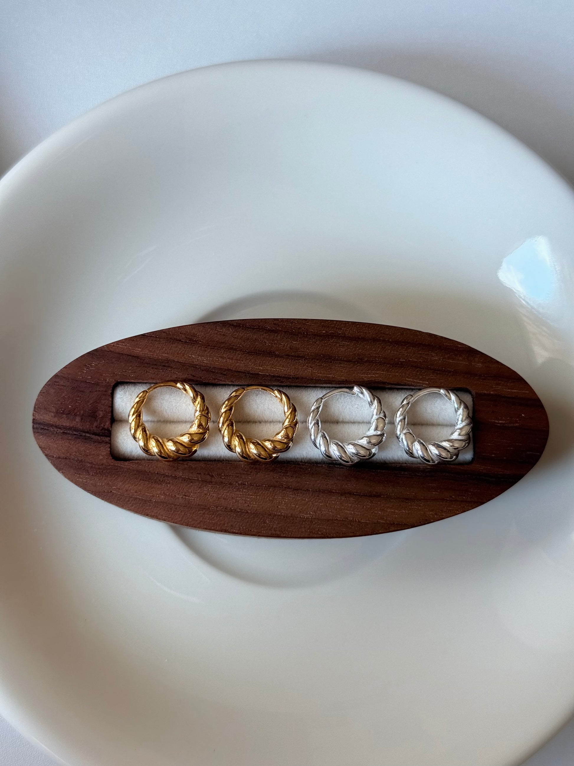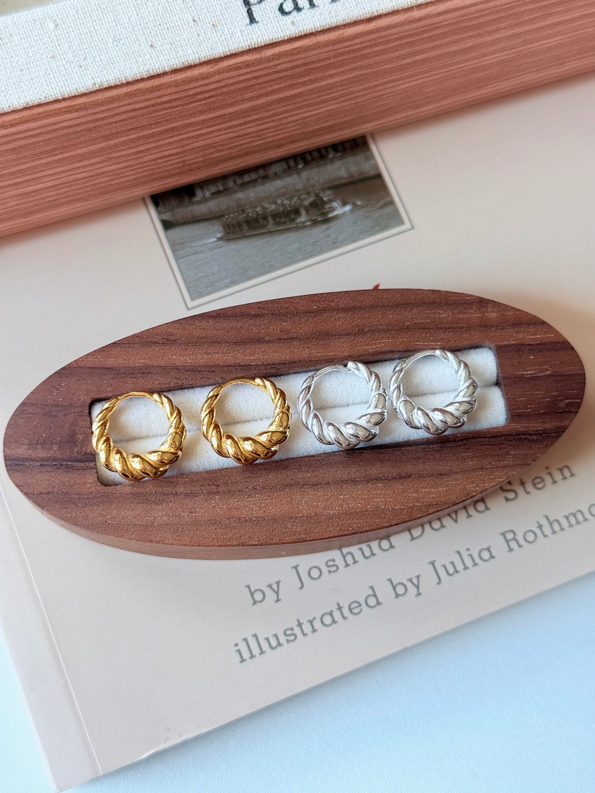 商品特色|纏繞的線條,像溫柔的守護環繞在耳畔。這款經典麻花耳環,以立體扭轉線條打造,展現簡約卻富有細節