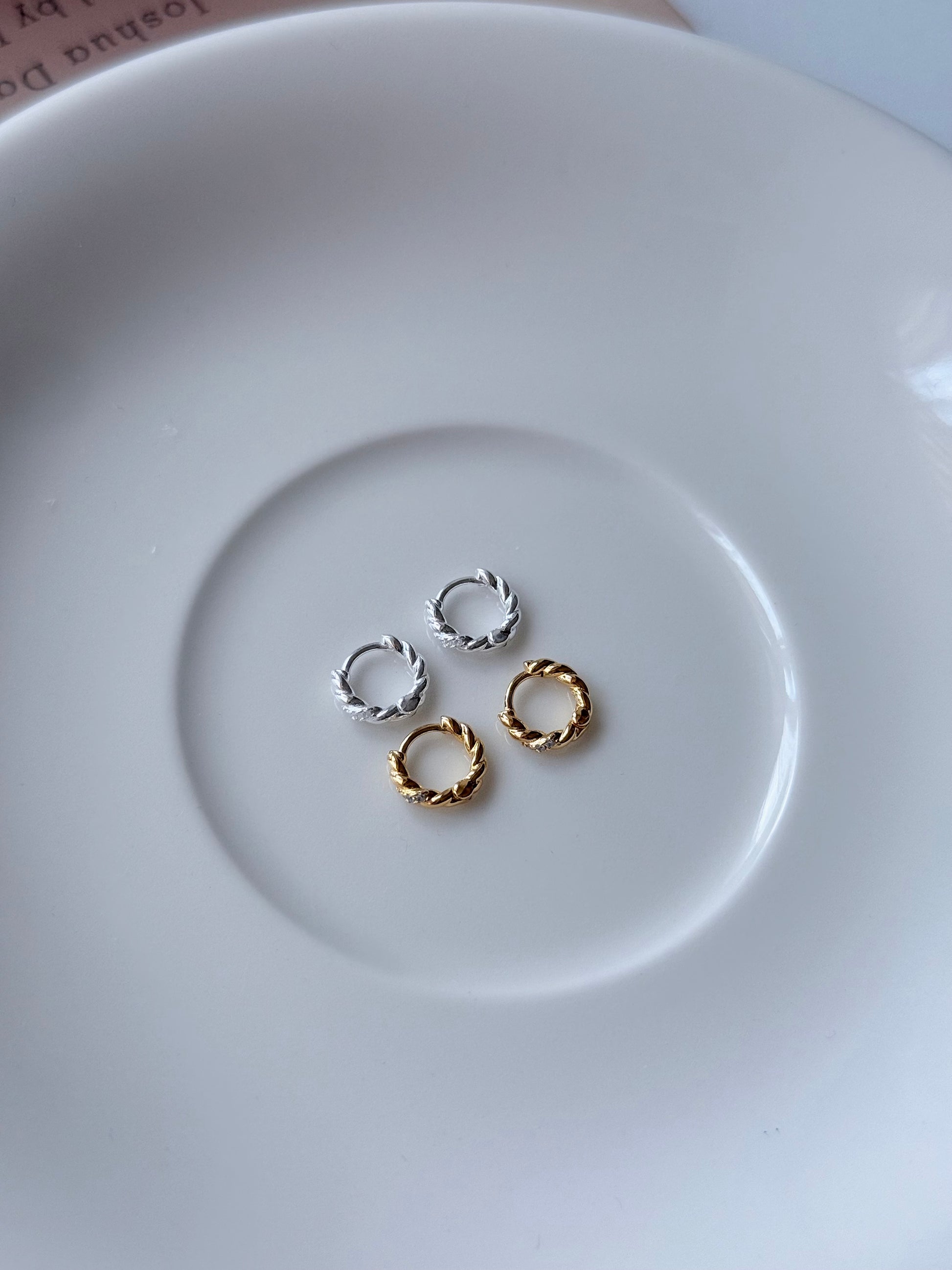 商品特色|小巧卻充滿細節感的麻花耳扣,以扭繩線條呈現柔和的立體光澤。金色是焦糖暖光,銀色是奶霧柔