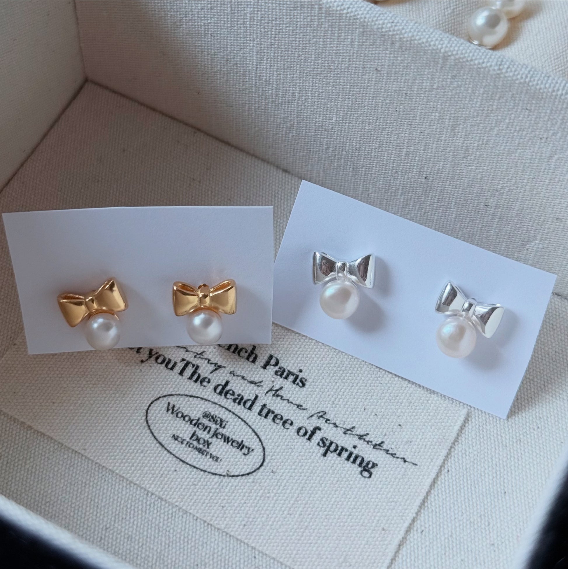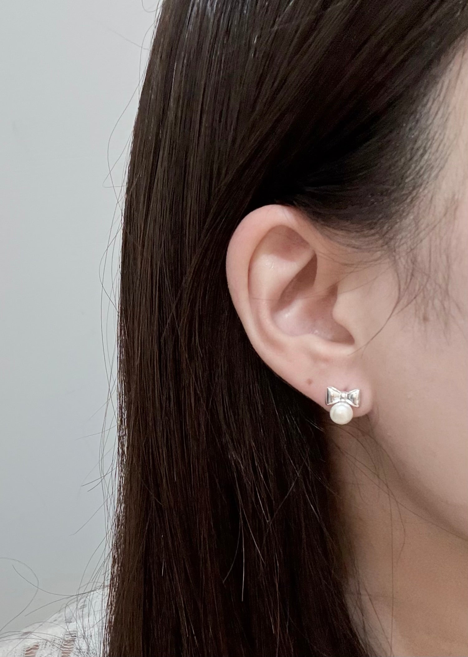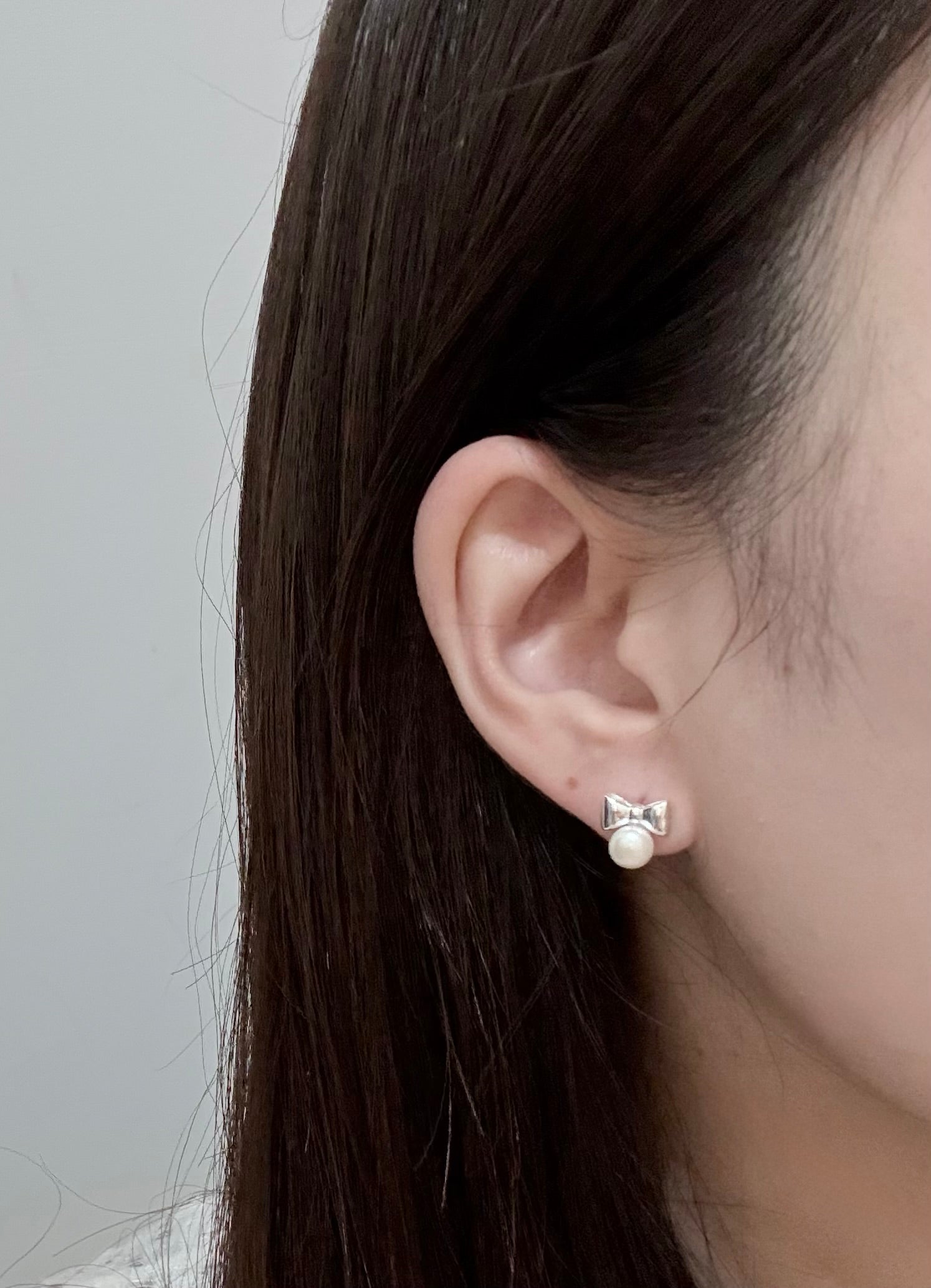 立體的蝴蝶結,帶著輕盈與浪漫,搭配天然淡水珍珠的光澤,就像一份細膩的禮物。垂落在耳畔的每一刻,都溫柔而