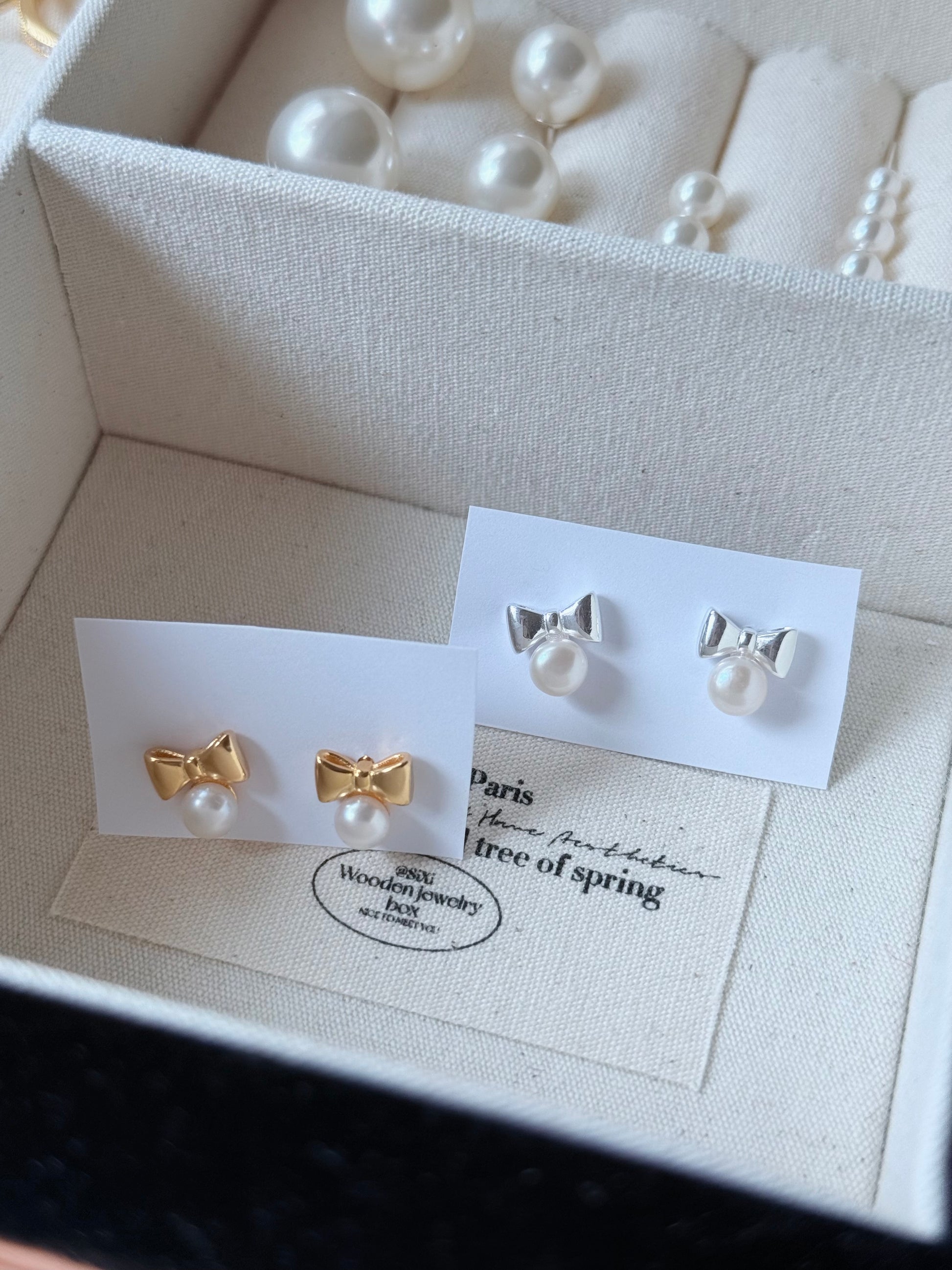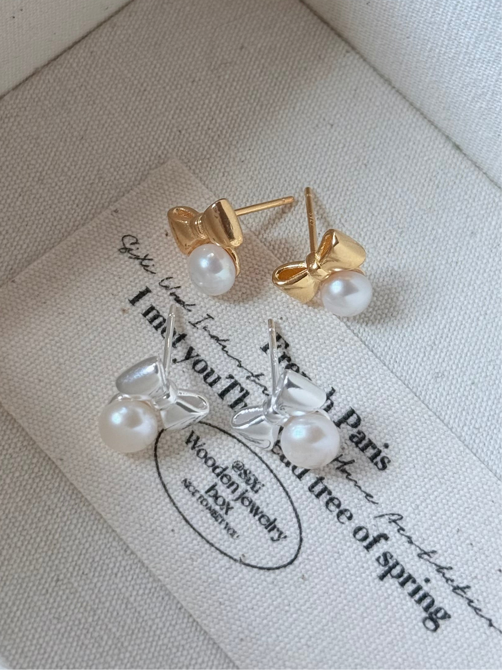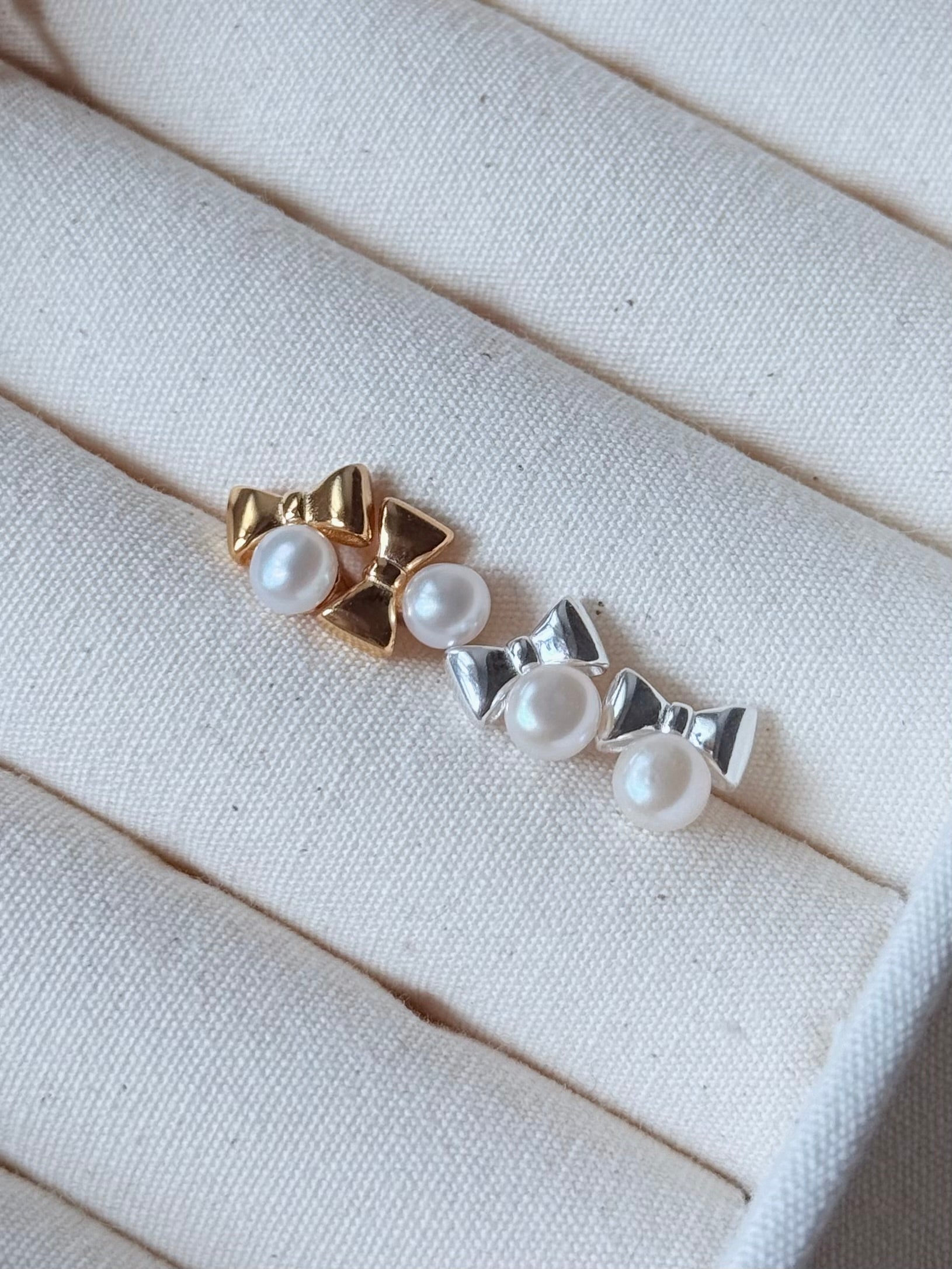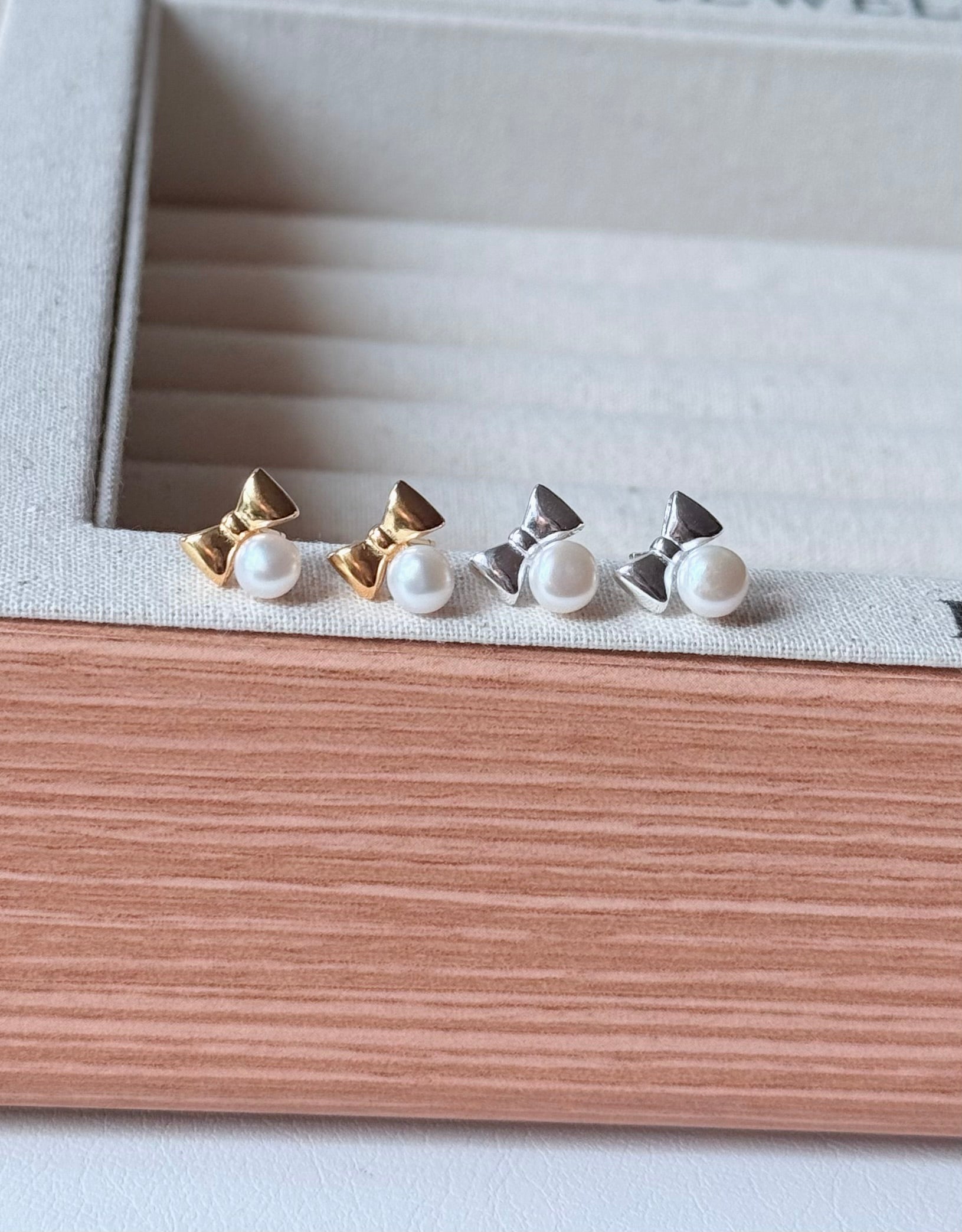 立體的蝴蝶結,帶著輕盈與浪漫,搭配天然淡水珍珠的光澤,就像一份細膩的禮物。垂落在耳畔的每一刻,都溫柔而